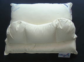 ![]() 側生地:綿100% 詰め物:水鳥100%(スモールフェザー100%)・1.2kg サイズ:50×60cm (ドイツ・ビラベック睡眠研究所で開発) |